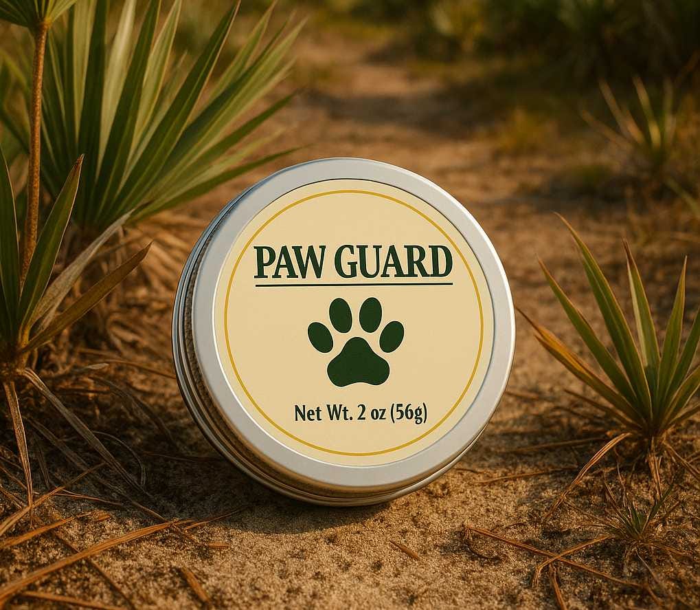Herbal paw protection for Florida’s toughest terrain. Shields against hot pavement, salt, sand, and rough ground while soothing and restoring dry, cracked pads.